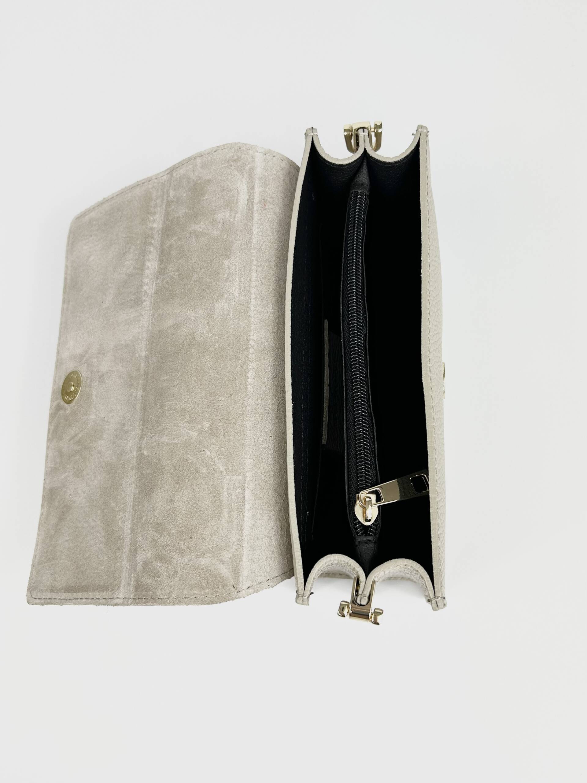 Skórzana torebka zamykana na zatrzask magnetyczny.