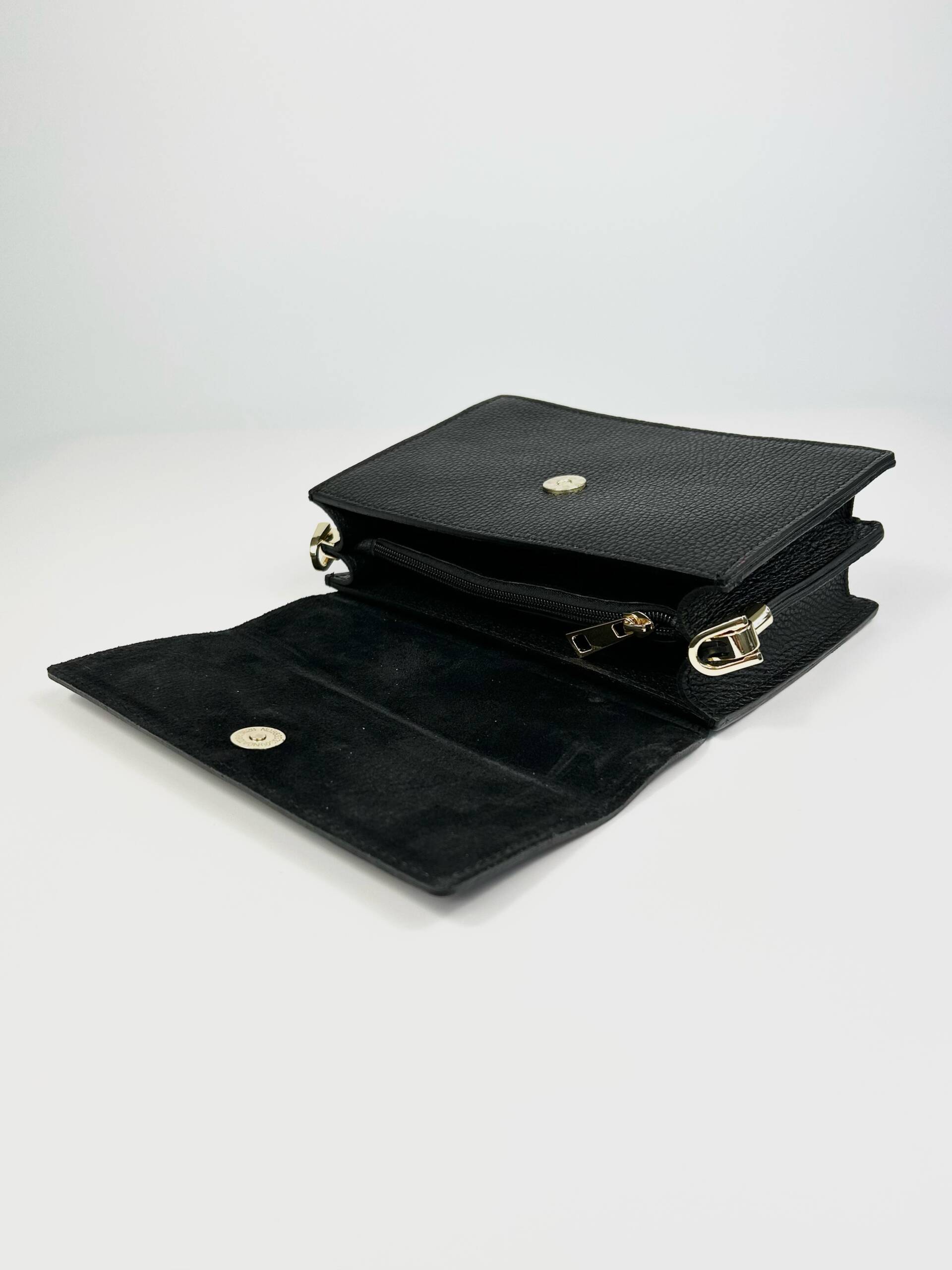 Skórzana torebka zamykana na zatrzask magnetyczny.