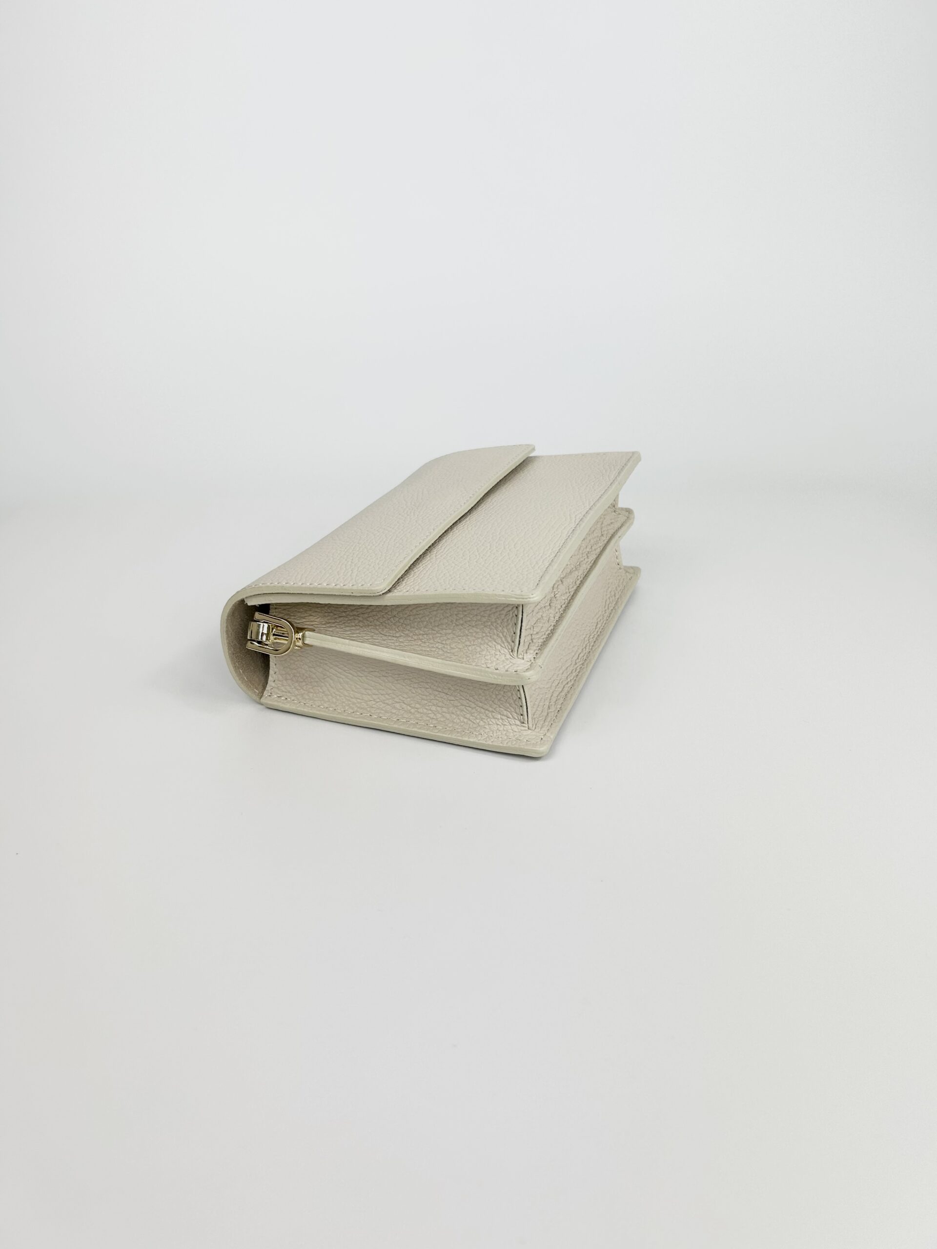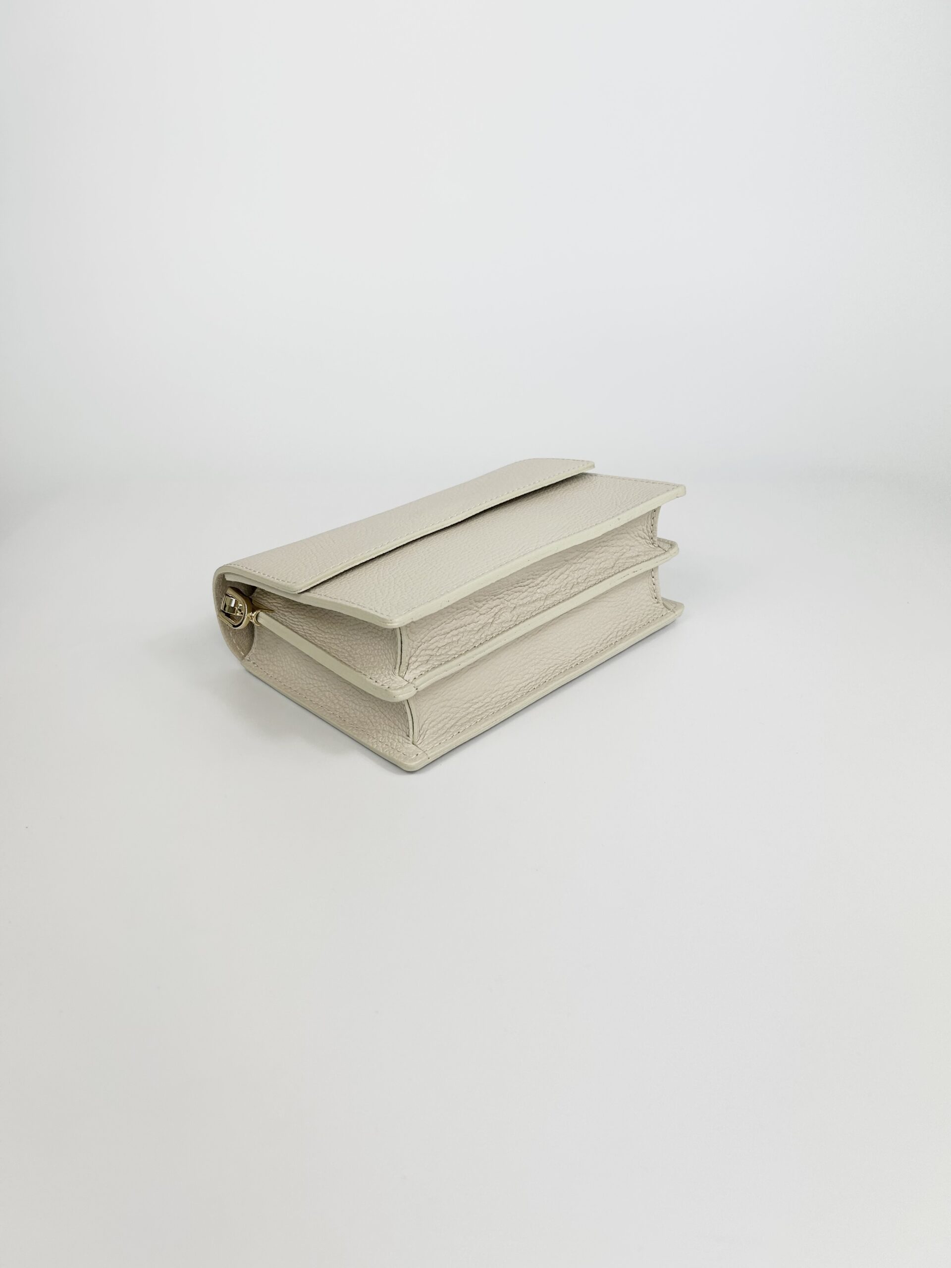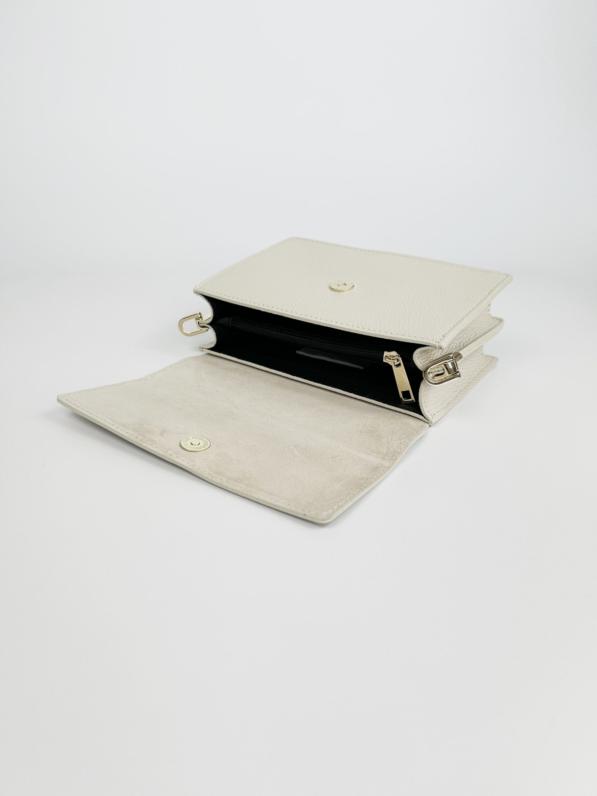 Skórzana torebka zamykana na zatrzask magnetyczny.