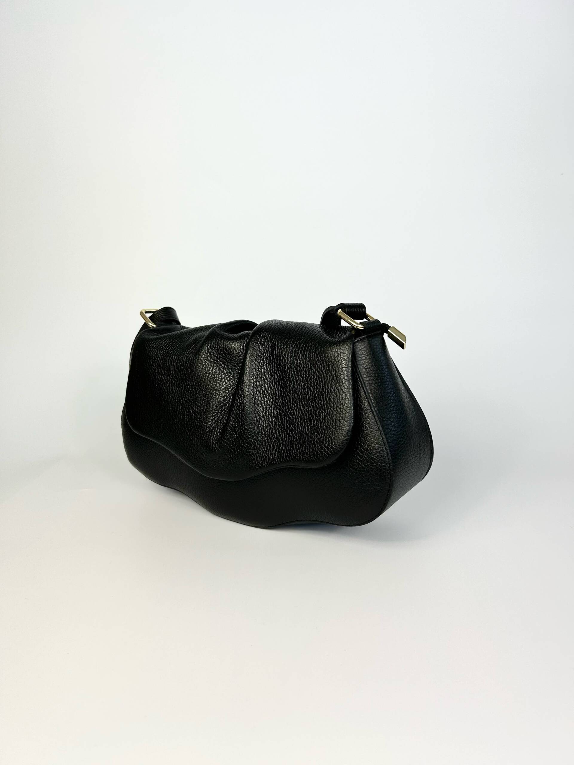 Piękna skórzana torebka o wyjątkowym kształcie.