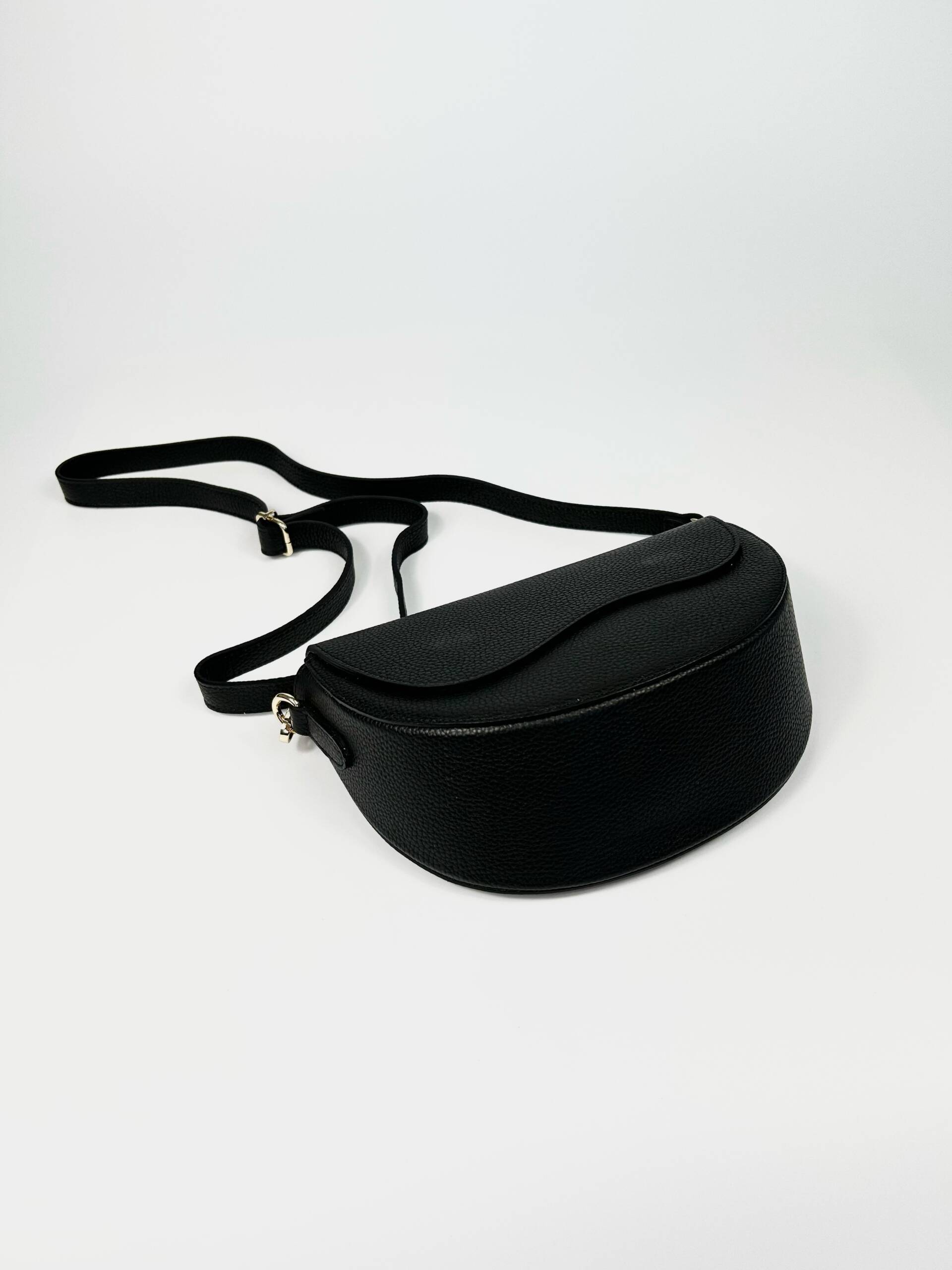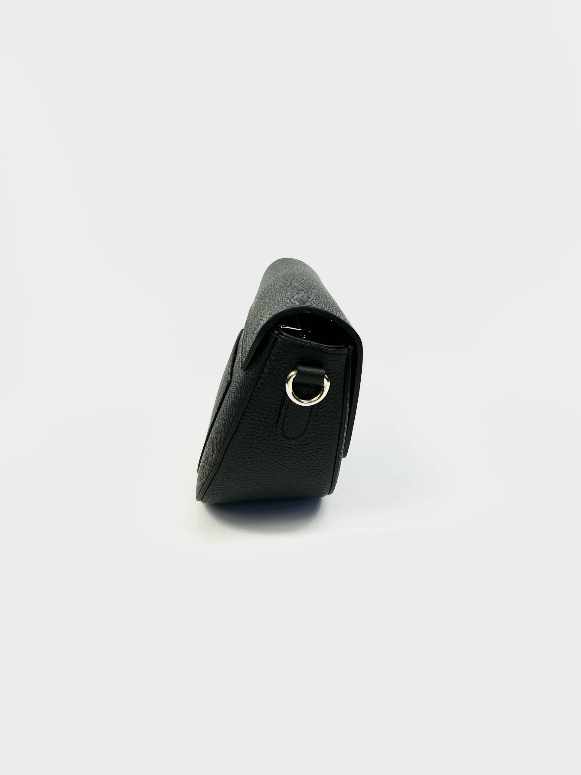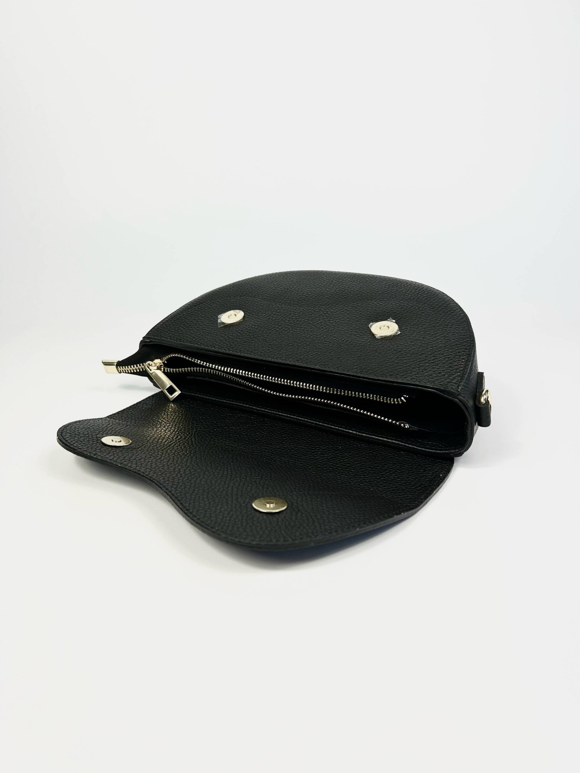 Skórzana torebka jednokomorowa, zamykana na dwa zatrzaski magnetyczne.