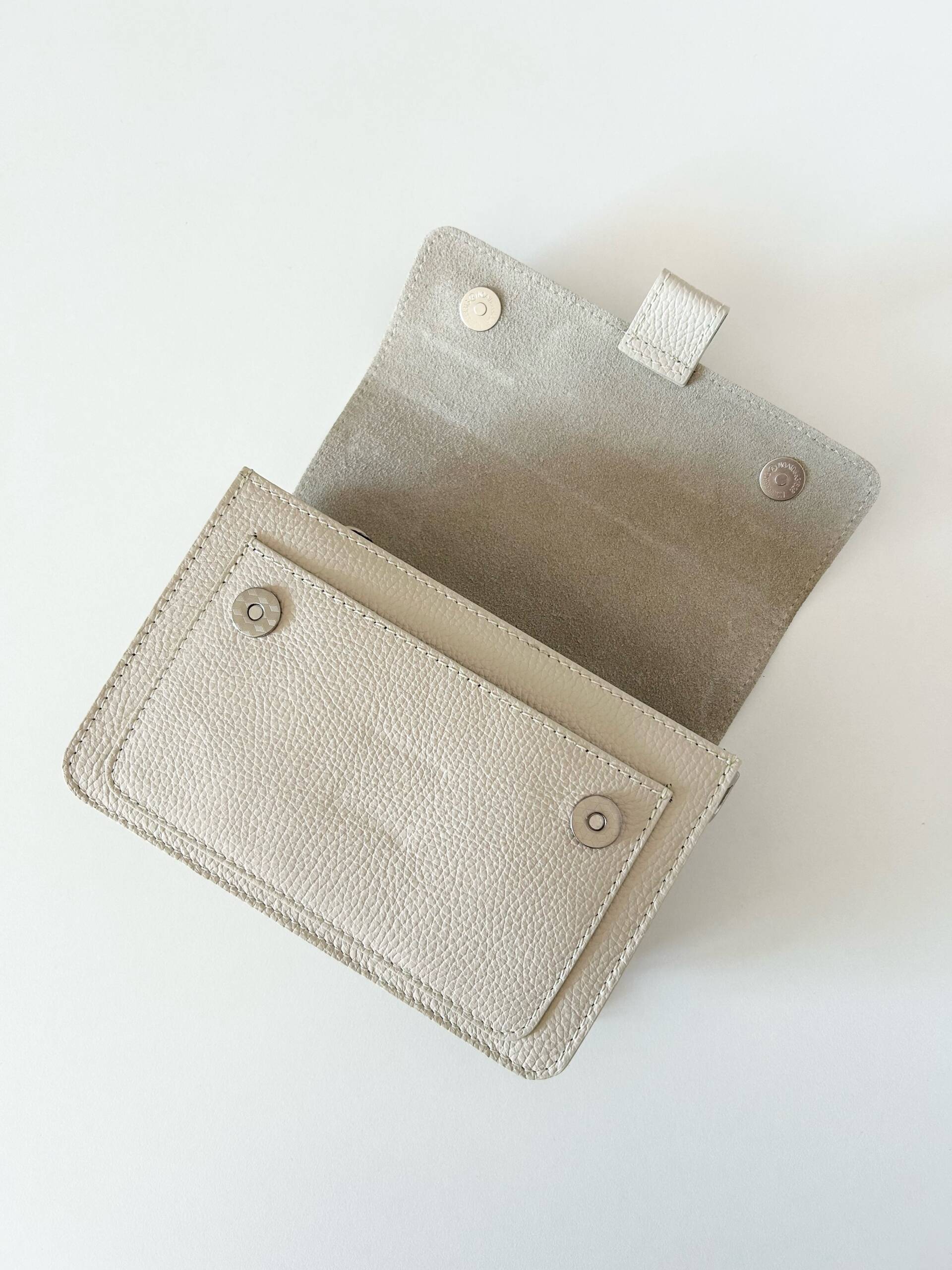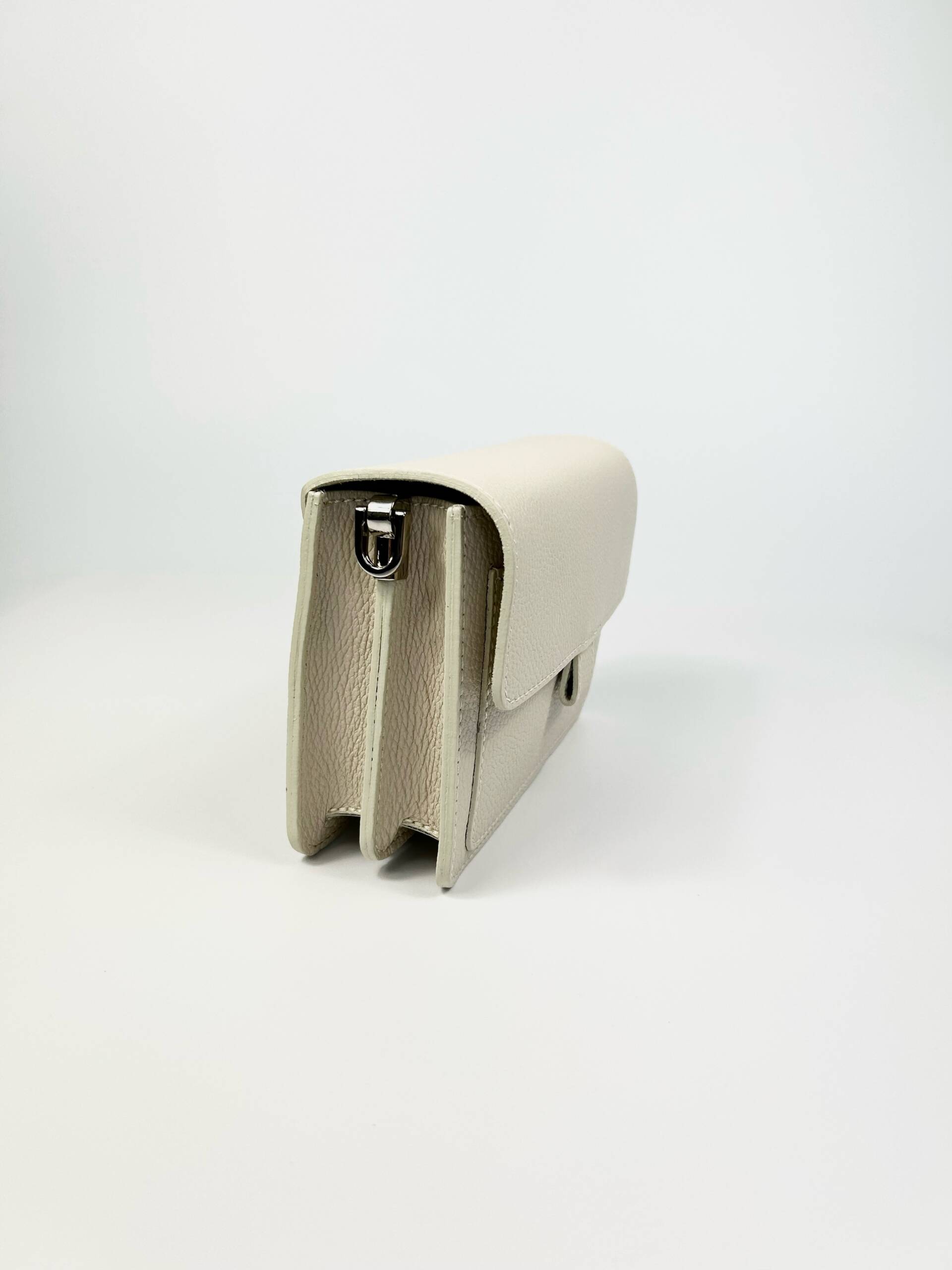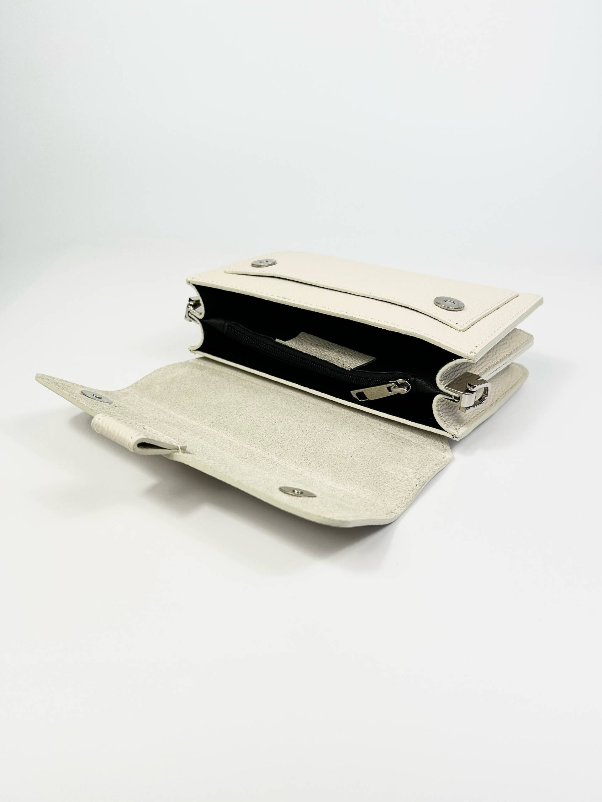 Skórzana torebka zamykana na dwa zatrzaski magnetyczne.