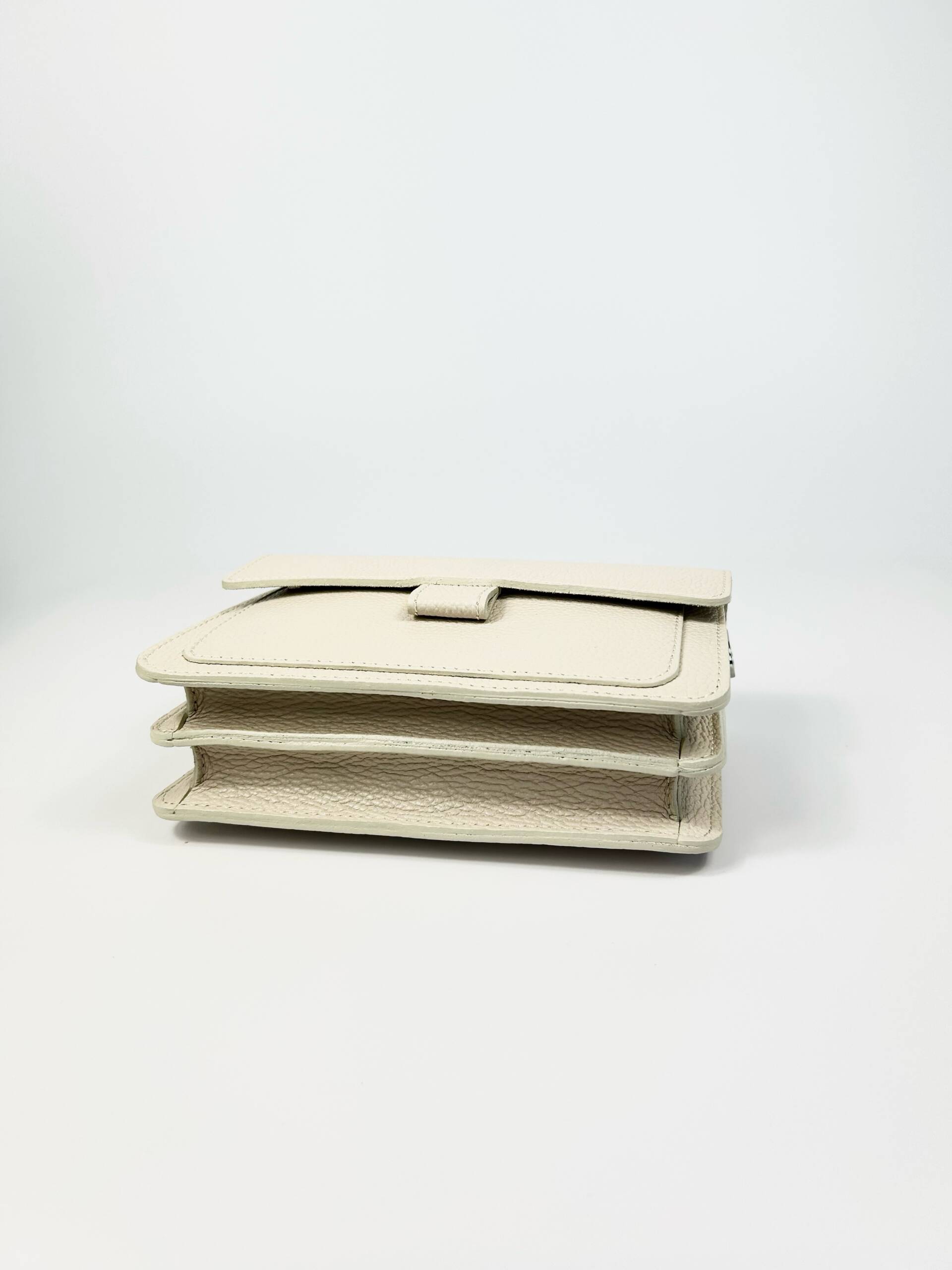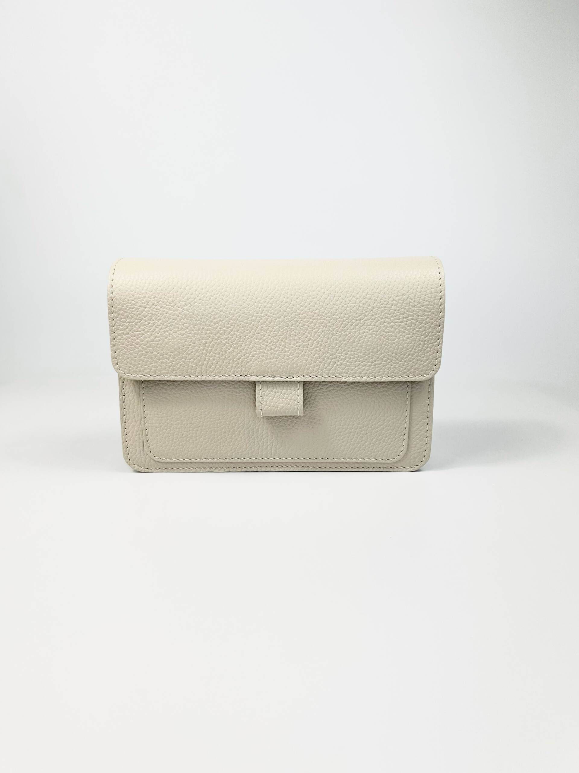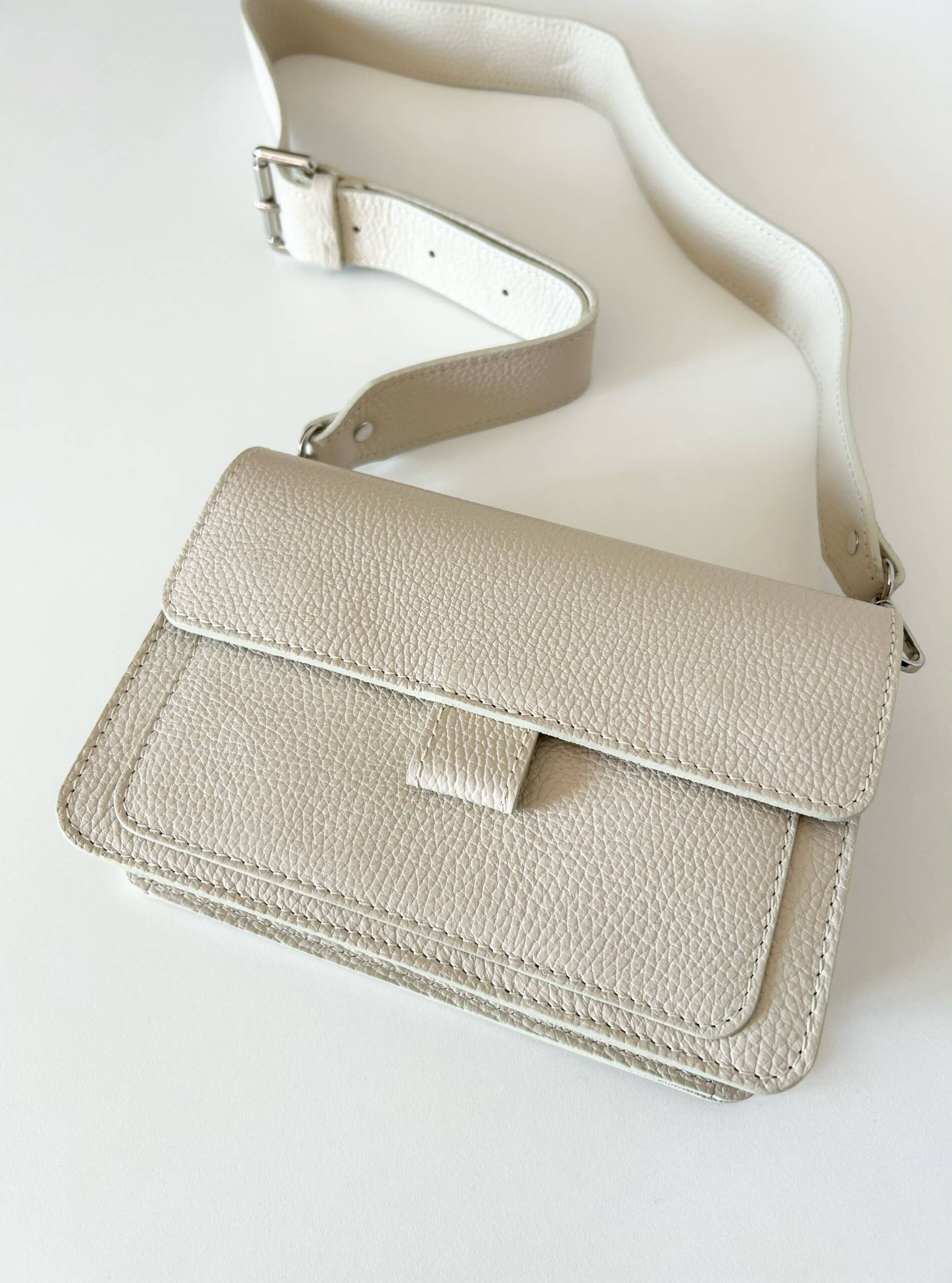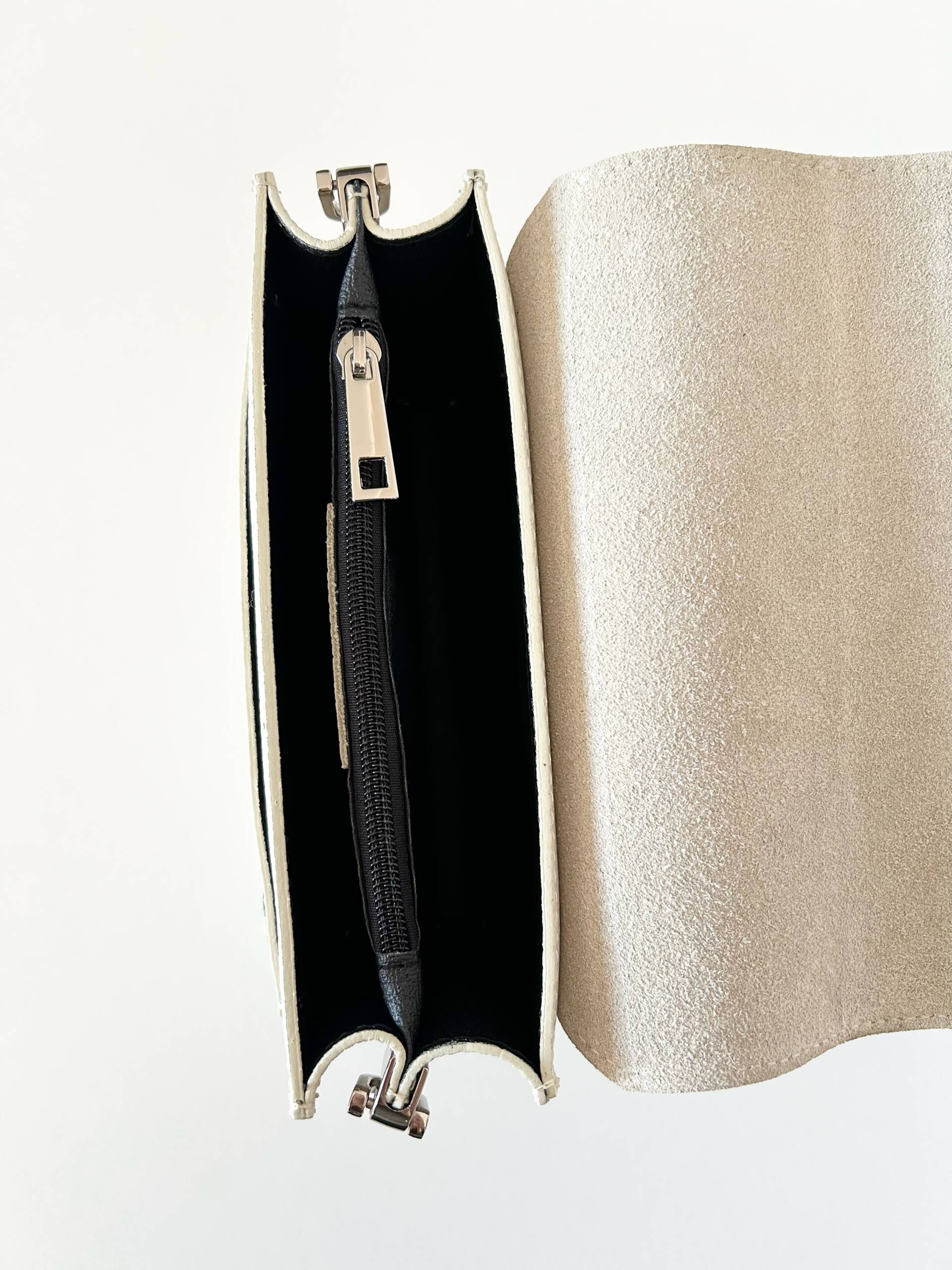 Skórzana torebka zamykana na dwa zatrzaski magnetyczne.