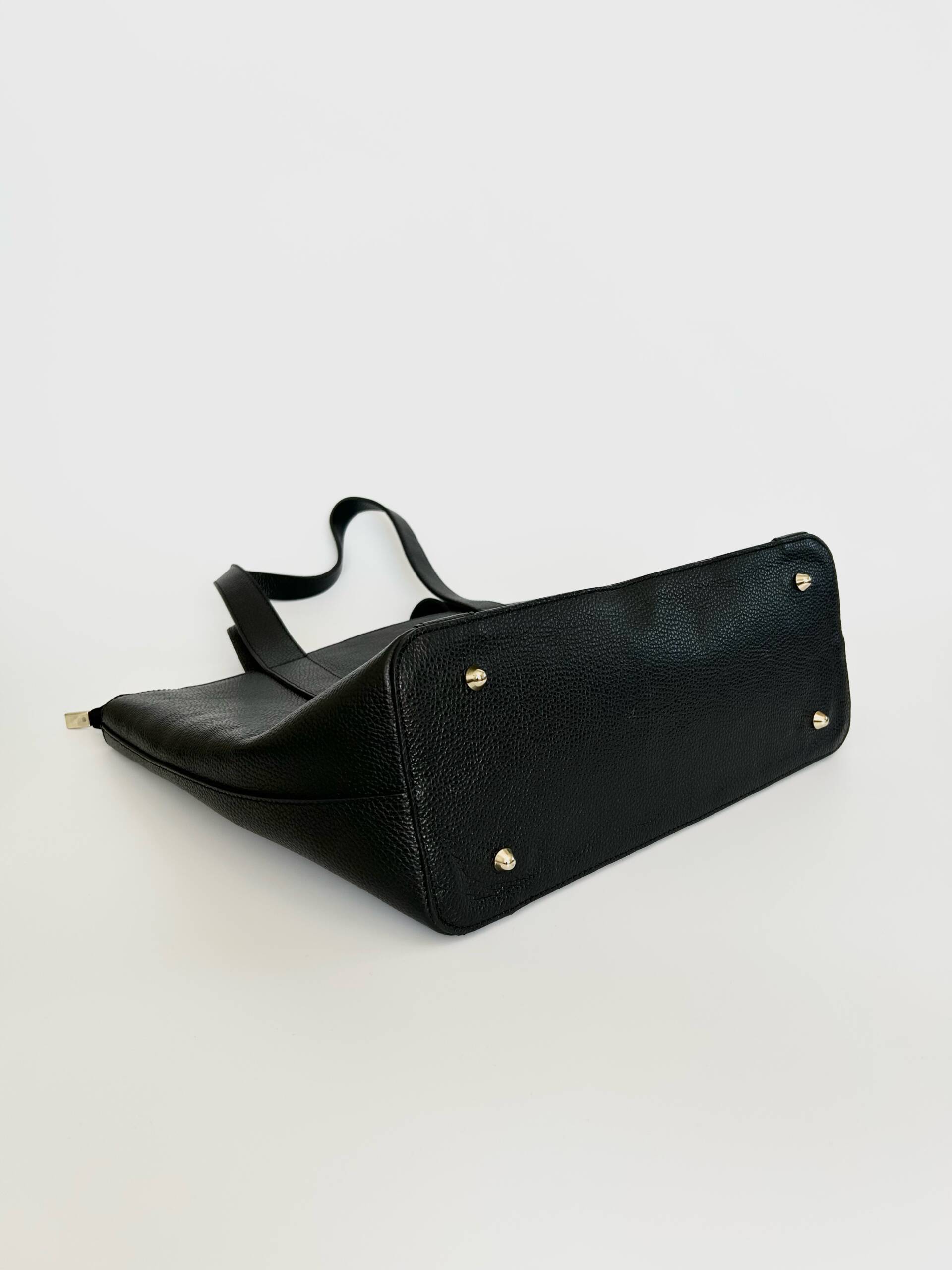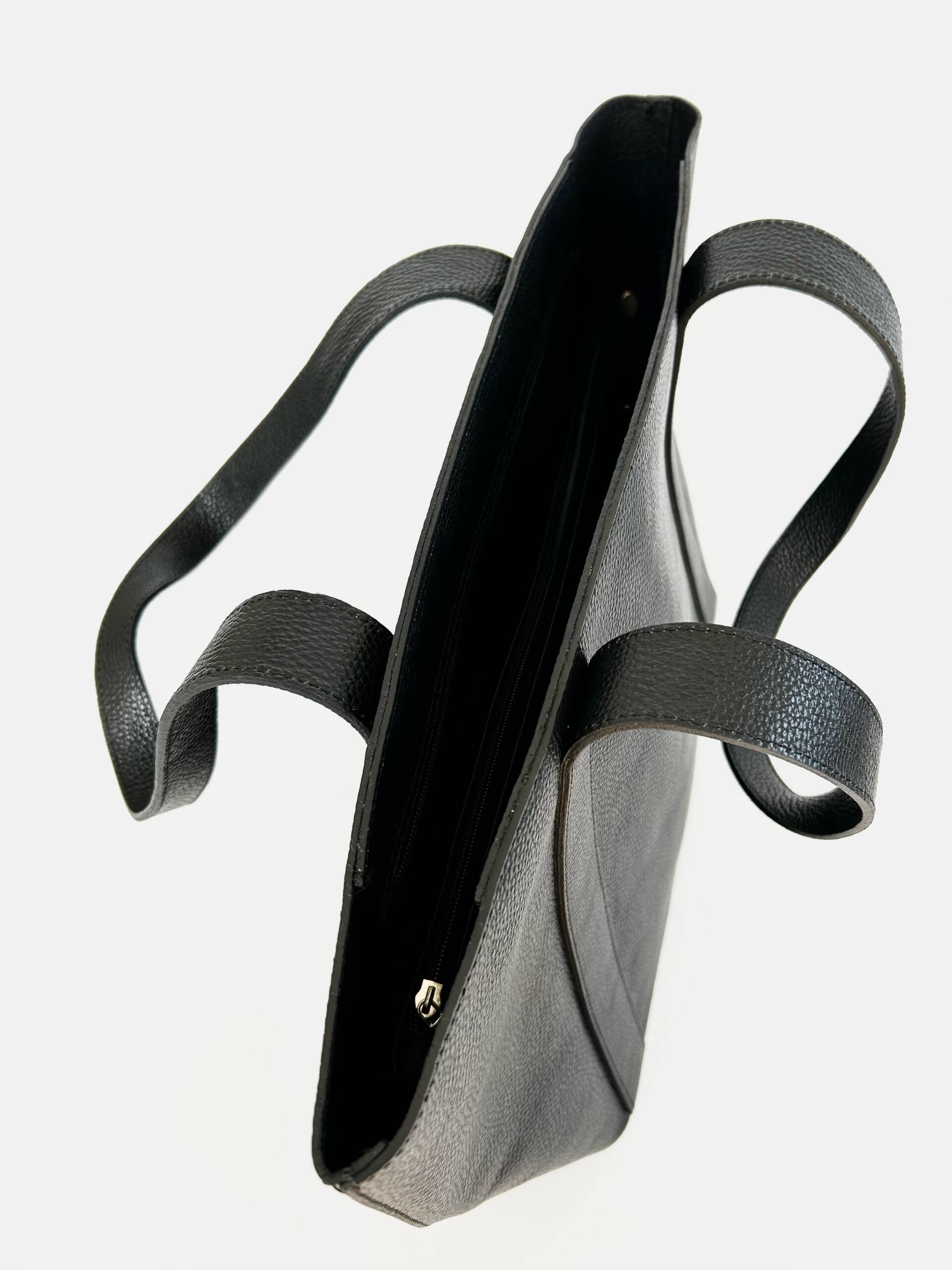 Pojemna skórzana torebka, zamykana na zamek błyskawiczny.